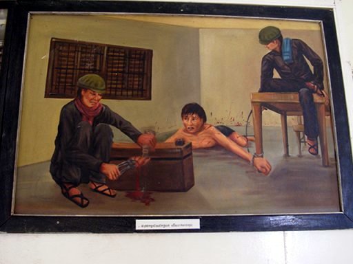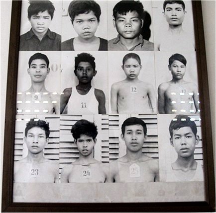 Tuol Sleng Museum: Das frühere S -21 Gefängnis der Khmer Rouge war eine ihrer geheimsten Einrichtungen. Auf dem Gelände einer normalen Schule wurde dieses Gefängnis eingerichtet. Über 10.000 Menschen wurden dort eingekerkert, gefoltert und getötet, Kinder nicht mitgerechnet. Nach der Einlieferung wurden sie fotografiert, dann in Einzel- oder Gruppenzellen angekettet. Später wurden viele in das Vernichtungslager von Choeung Ek gebracht. Schliesslich als die "Revolution" immer wahnsinniger wurde, begann sie, ihre eigenen Kinder zu fressen, Generationen von Folterern töteten diejenigen, die vor ihnen hier arbeiteten. Anfang 1977 hatte S-21 etwa 100 Opfer pro Tag zu verzeichnen.