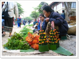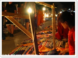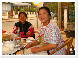 Das laotische Essen ist vielfältig, viel Rohkost, gehacktes Fleisch mit Koriander, Zitronengras und Chilli. Die Suppen waren mir generell zu pfeffrig und salzig aber das ist Geschmackssache. Für die aufgeschlosseneren unter den Lesern ist auf jeden Fall der Nachtmarkt empfehlenswert, wo man sich auf den Teller laden kann, was man will und es schmeckt ebenso gut wie in einem Restaurant. Die Marktatmosphäre und der Lokalkolorit eines Nachtmarktes ist von keinem Restaurant zu toppen, da man beim Essen der einkaufenden Bevölkerung zuschauen kann ebenso wie den Ritualen der zahlreichen Backpacker, die bei diesen Preisen lebhaft zugreifen.